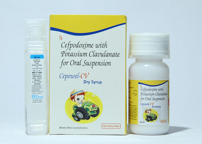 | CEPOWEL- CV 100 Dry Syrup (WFI) | Cefpodoxime 100mg with Clavulanate acid 62.50 mg Dry Syrup (WFI) | 9x30ML | View Catalog | View Product |