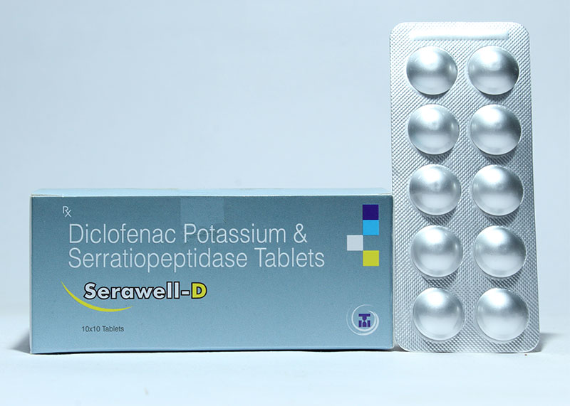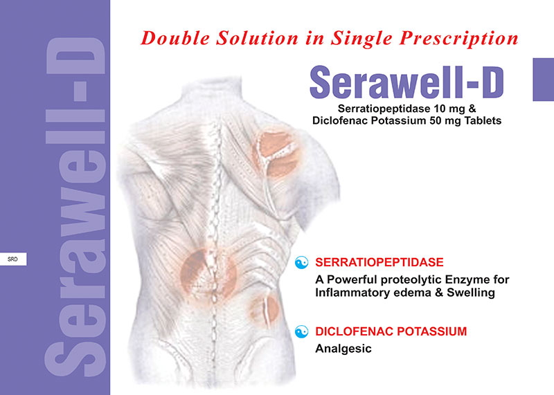 | SERAWELL-D | Serratiopeptidase 10mg with Diclofenac Potassium 50mg Tablet | 10x10 Alu-Alu | View Catalog | View Product |