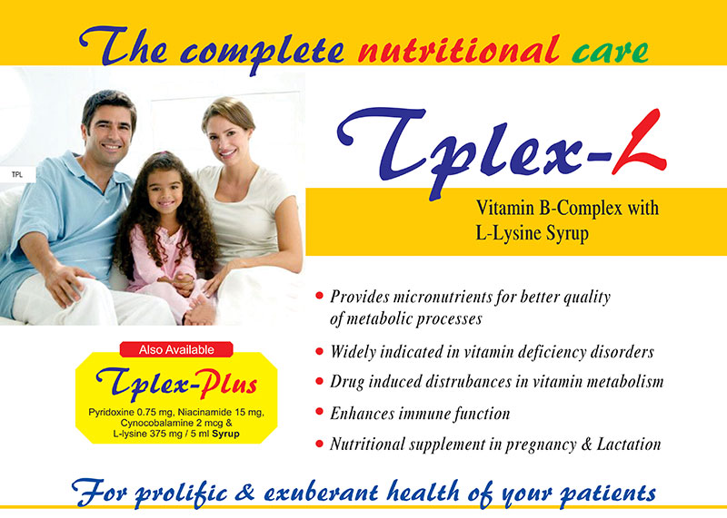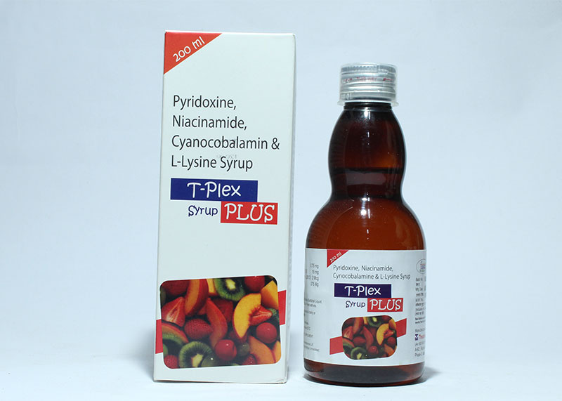 | T-PLEX PLUS | Pyridoxine 0.75mg, Niacinamide 15mg Cyanocobalamin 2Mcg, L-Lysine 375Mg Syrup | 200ML 1C/S=71 | View Catalog | View Product |