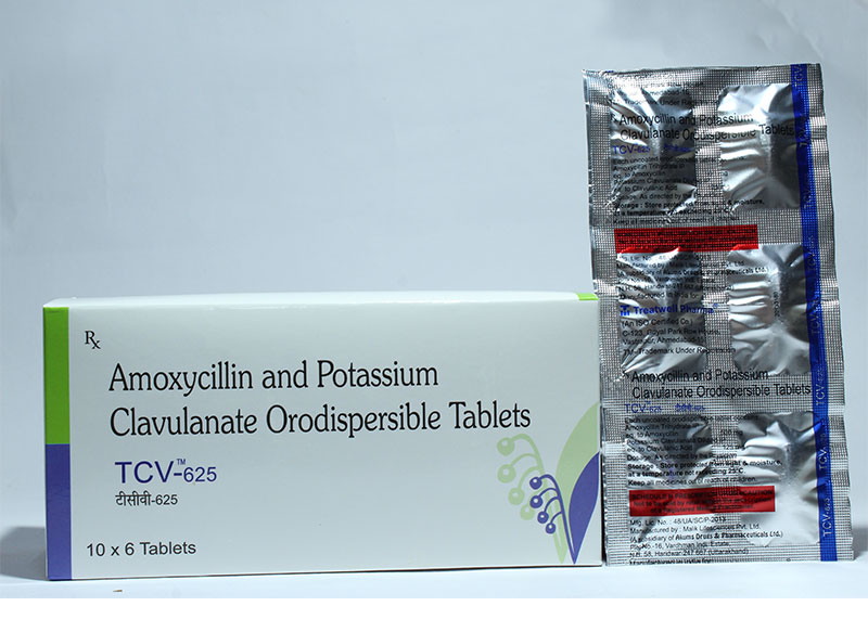 | TCV- 625 LB | Amoxycillin 500mg With Clavulanate Acid 125mg With Lactic Acid Bacillus Dispersable Tablet |