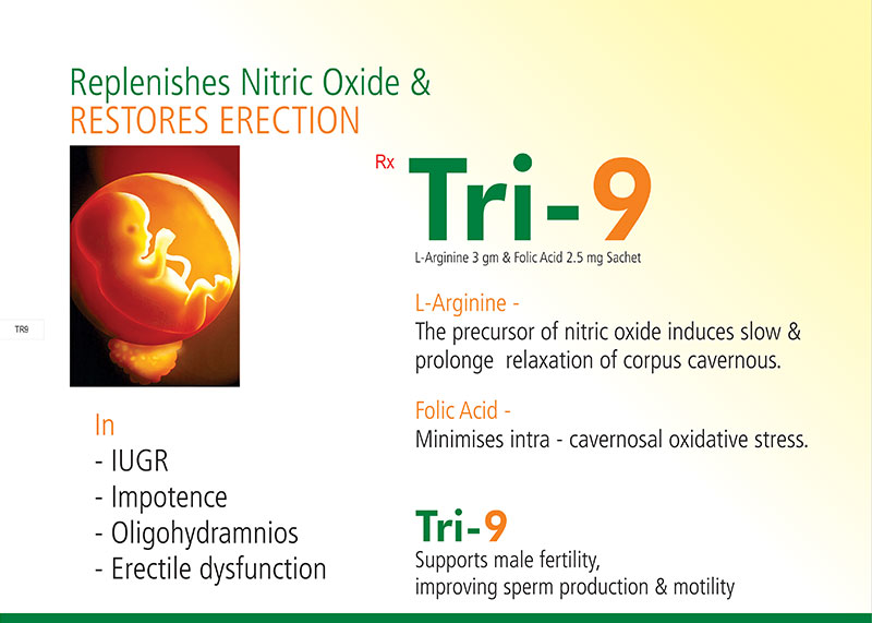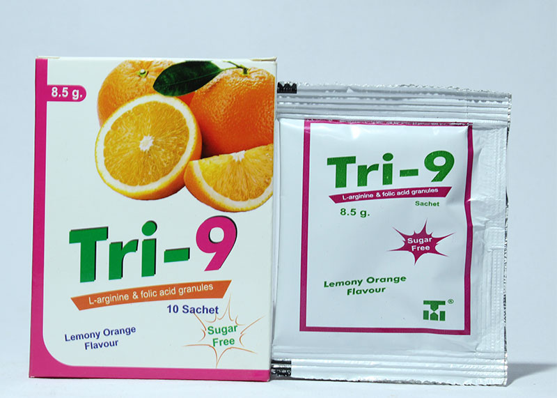 | TRI-9 DHA | L-ARGININE 5GM, DHA 200MG, PROANTHOCYNIDIN 75MG, FOLIC ACID 176MCGG, VITAMIN B6 2.4MG, CYANOCOBALAMIN 2.2MCG SACHET | 10X8.5 GM | View Catalog | View Product |