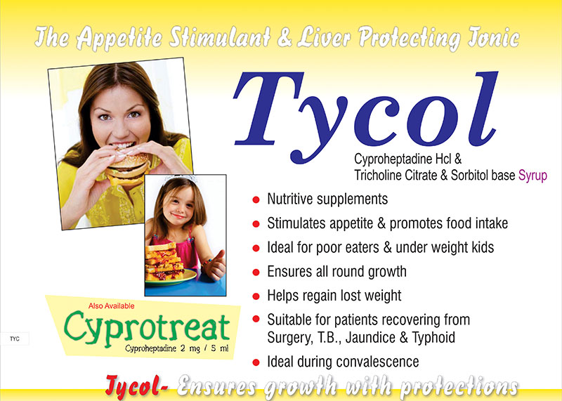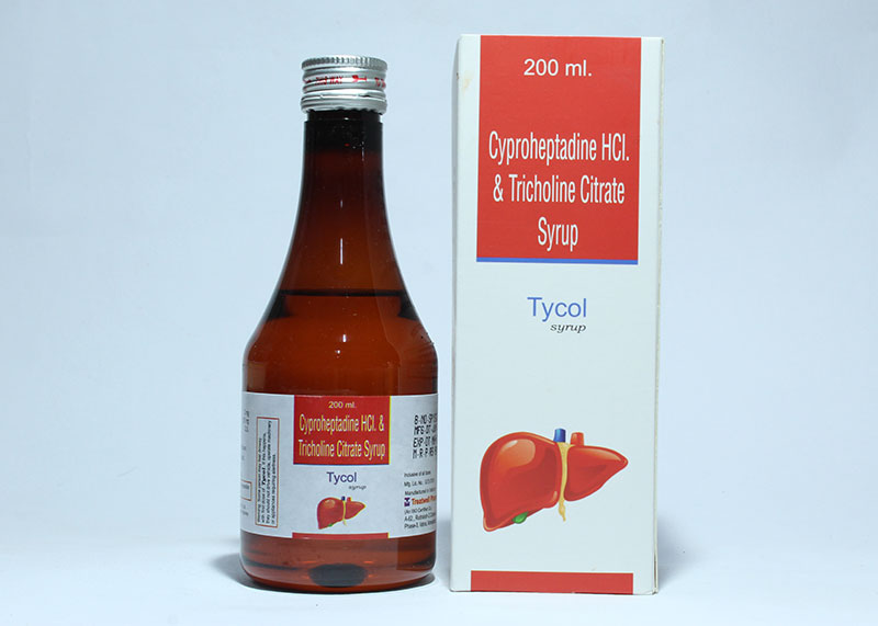 | TYCOL 200ML | Cyproheptadine 2mg with Tricholine Citrate 275mg 200ML Syrup | 200ML 1C/S=72 | View Catalog | View Product |