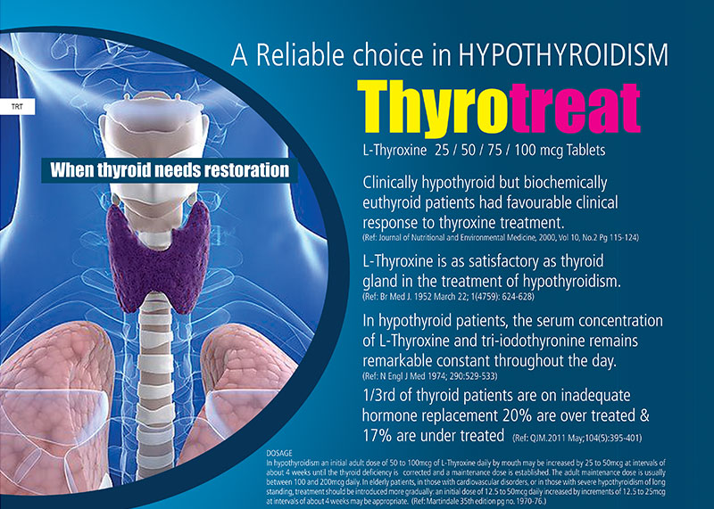 | THYROTREAT -50 | Thyroxine 50mcg Tab. | 100 Tab Bottle | View Catalog | View Product |