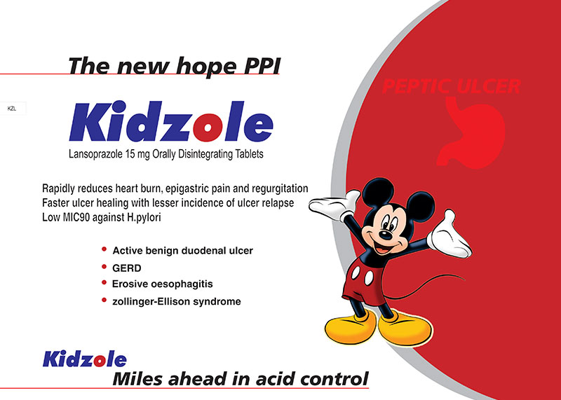 | KIDZOLE | Lansoprazole IP 15 mg Tablet | 10x10 Alu-Alu | View Catalog | View Product |