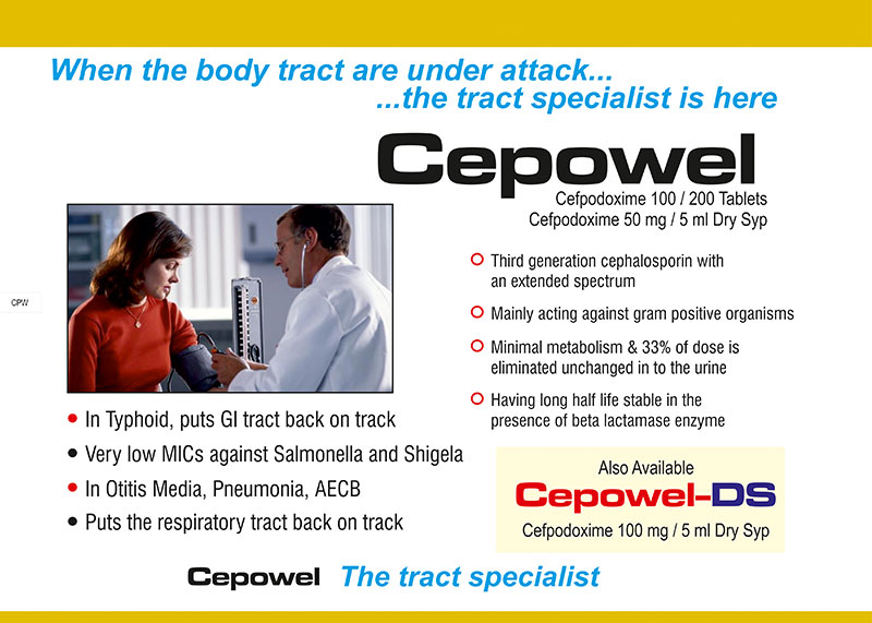 | CEPOWEL- 200 | Cefpodoxime 200mg Tablet | 10x10 Alu-Alu | View Catalog | View Product |