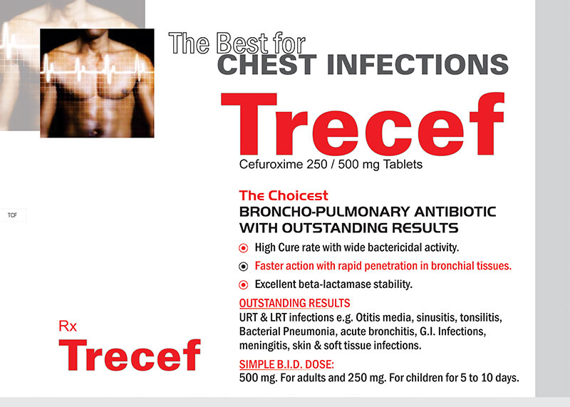 | TRECEF- 500 | Cefuroxime 500mg Tablet | 10x1x6 Alu-Alu | View Catalog | View Product |