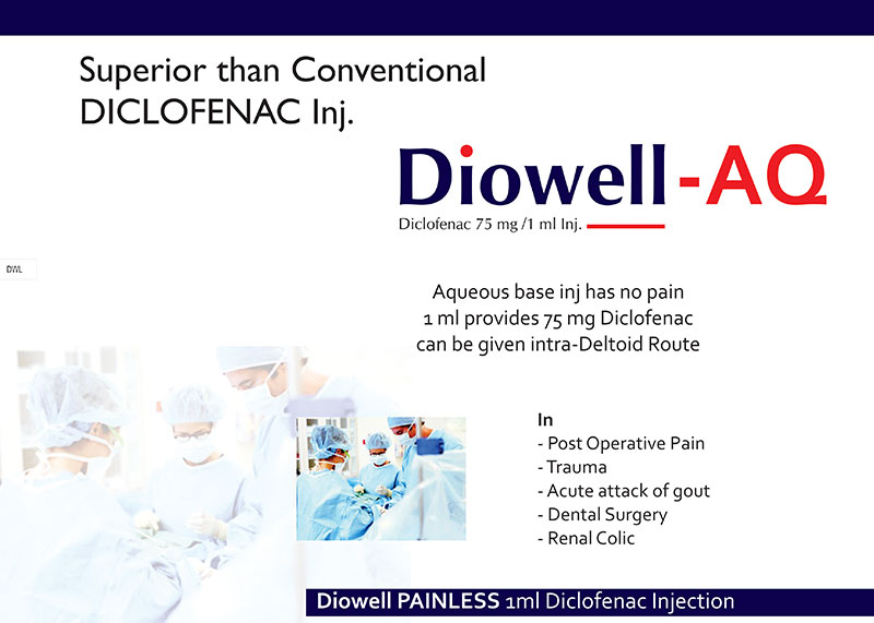 | DIOWELL AQ | Diclofenac 75mg / 1ml Aqua Base Injection | 10x5x1 Amp | View Catalog | View Product |