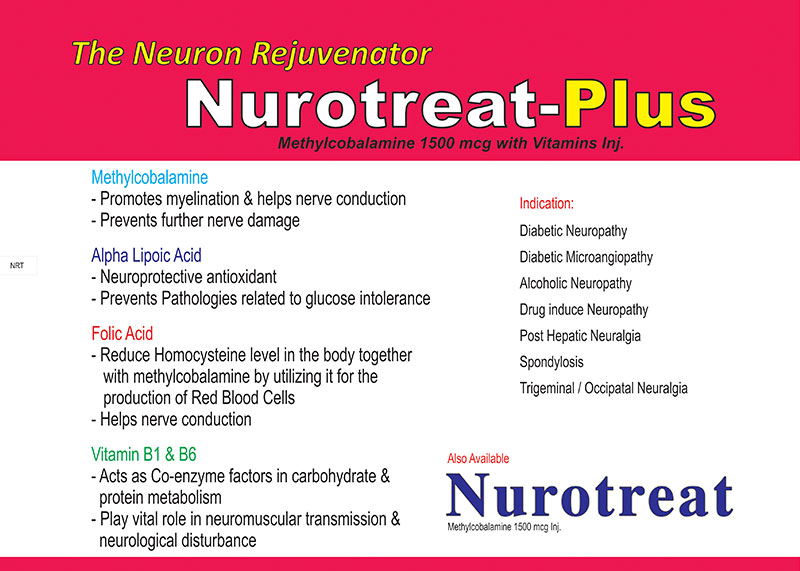 | NUROTREAT PLUS INJ | Methylcobalamin 1500mcg with Vitamins Injection | 10X5X2 ML | View Catalog | View Product |