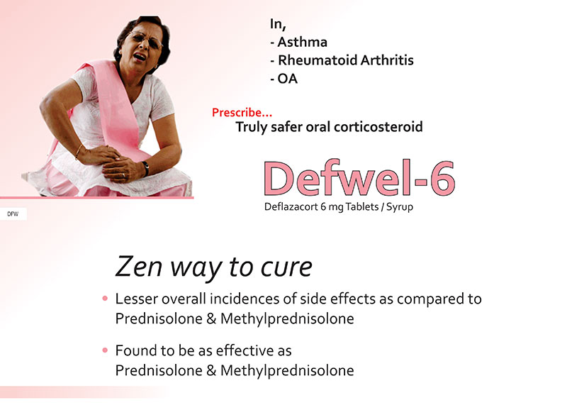 | DEFWELL-6 TABLET | Deflazacort 6mg Tablet | 10x10 Alu-Alu | View Catalog | View Product |
