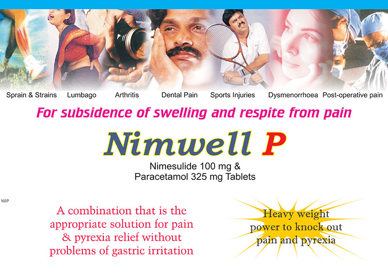 | NIMWELL-P | Nimesulide 100 mg with Paracetamol 325mg Tablet | 10x10 Blister | View Catalog | View Product |