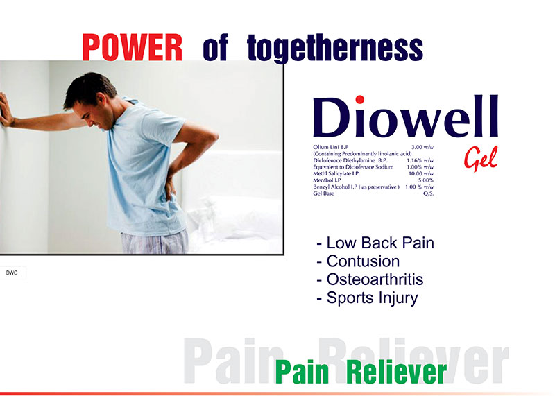 | DIOWELL GEL | OliumLini B.P 3.00%ww Diclofenac Diethylamine 1.16% w/w, Diclofenac Sodium 1.00% w/w, Methylsalicylate 10.00 w/w& Menthol 1.00% Gel Base | 25x30GM | View Catalog | View Product |