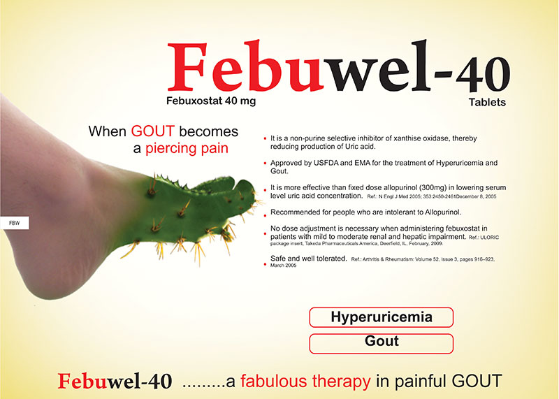 | FEBUWEL-40 | Febuxostat 40mg Tablet | 10x10 Alu-Alu | View Catalog | View Product |