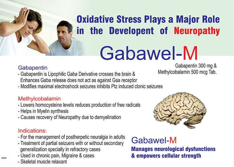 | GABAWEL-M | Gabapentin 300mg &Methylcobalamin 500mcg Tab. | 10x10 Alu-Alu | View Catalog | View Product |