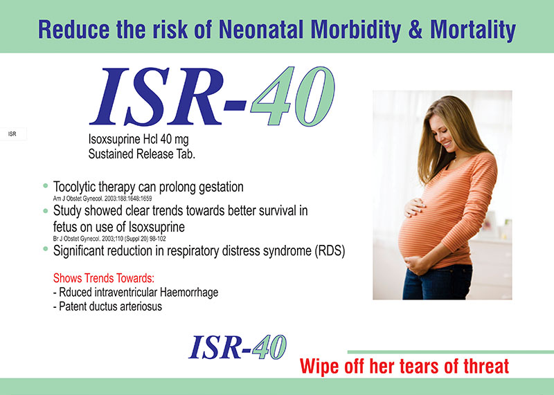 | ISR-40 | Isoxsuprine 40mg (SR) | 10x10 Alu-Alu | View Catalog | View Product |