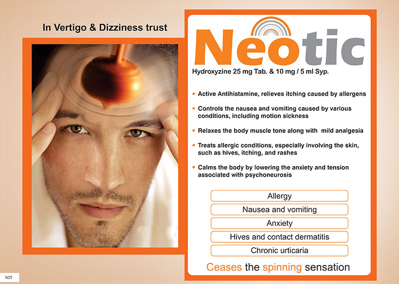 | NEOTIC TAB | Hydroxyzine Hcl 25mg Tablet | 10x10 Alu-Alu | View Catalog | View Product |