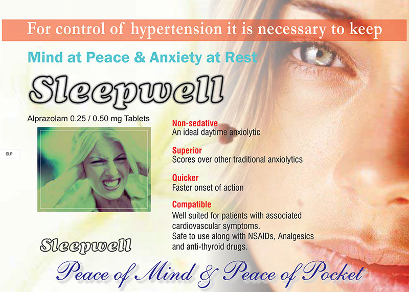 | SLEEPWELL-0.50 | Alprazolam 0.5 mg Tab. | 10x10 Blister | View Catalog | View Product |