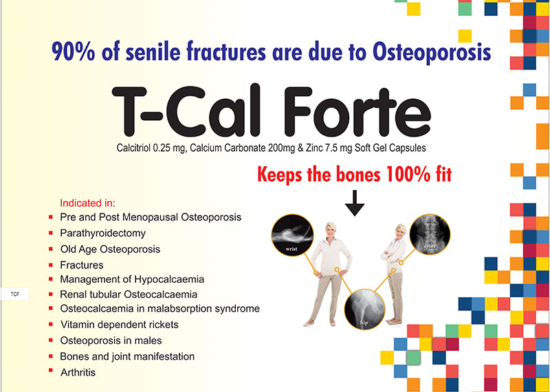 | T-CAL FORTE | Calcium 200mg, Calcitriol 0.25 mg, & Zinc7.5 mg Soft Gel Cap | 10x10 Blister | View Catalog | View Product |
